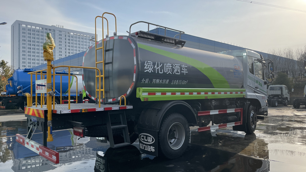 該車特點(diǎn) 罐體由國標(biāo)5mm厚優(yōu)質(zhì)碳鋼板一次性卷壓成型,二保焊行走小車自動焊接,焊縫均勻、美觀,避免了人工焊接的漏焊和虛焊,罐體內(nèi)部加固處理,并設(shè)置防浪板,罐體內(nèi)外做防銹處理,標(biāo)配前沖、后灑、側(cè)噴、后置式工作平臺,平臺帶踏梯,四周有安全護(hù)欄,平臺上設(shè)有高壓水炮,可360°旋轉(zhuǎn),可調(diào)成:直沖狀、大雨、中雨、小雨、毛毛雨。